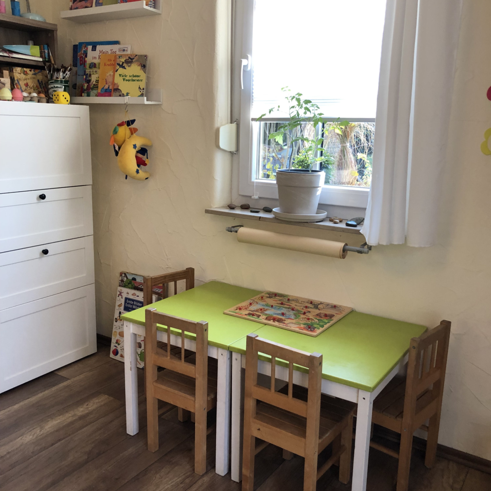 In unserem Haus stehen den Tageskindern ca. 75 m² von 125 m² zum Spielen, Lernen und Entdecken zur Verfügung. Durch die offene Aufteilung und Gestaltung der Räume entstehen verschiedene Bereiche wie z. B. der Koch-/ Essbereich, eine Ruhezone im Wohnzimmer, verschiedene Spielbereiche in Tageskinderzimmer und Flur, eine Kuschelecke und Schlafplätze in 2 verschiedenen Räumen, die auf das Alter und die Schlafgewohnheiten der Kinder abgestimmt werden können.