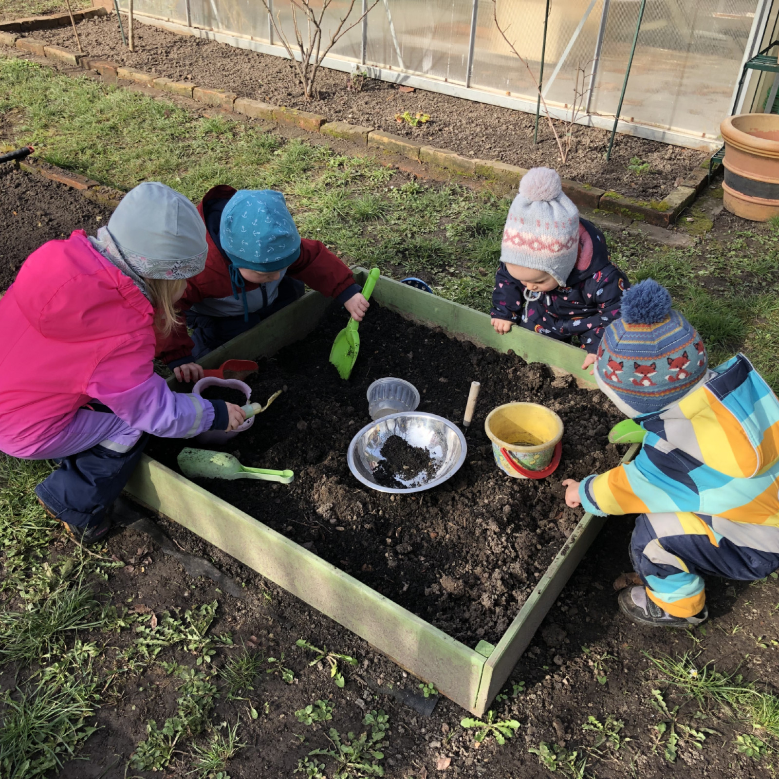 Das Besondere kann jederzeit entdeckt werden: In der Natur finden sich überall Sachen, mit denen man spielen und basteln kann. Mit viel Freude untersuchen wir unsere Umgebung und probieren z. B. womit man Musik machen kann, was sich zum Basteln eignet oder spielen einfach im Sandkasten. Für mich ist es immer wieder faszinierend, mit welchem Eifer und welcher Hingabe die Kinder neue Sachen für sich entdecken.